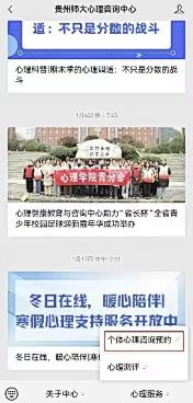 关注“贵州师大心理咨询中心”微信公众号,如未关注,请扫描以下二维码或搜索“贵州师大心理咨询中心”一键关注。