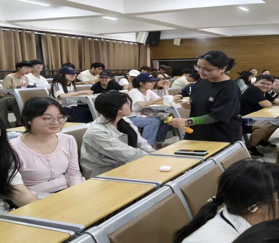 10月23日晚,音乐教育系专场,陈雨如以互动提问拉近距离,围绕“认识新环境、调整新节奏、建立新联结、管理新情绪”四大维度,结合案例与小测试,传授实用心理调适技巧,并现场解答“学习与社团平衡”“宿舍关系处理”等问题,获新生好评。