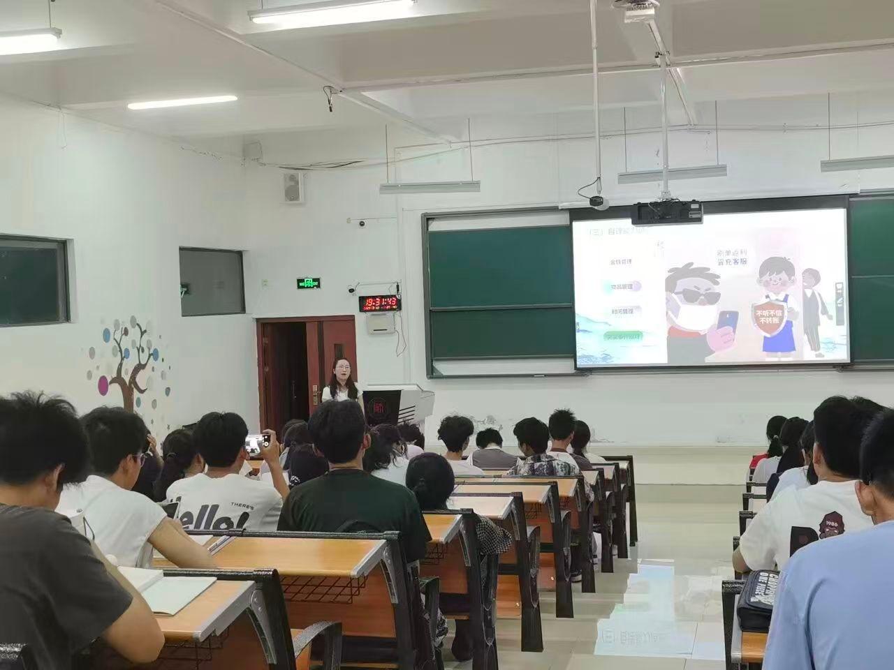 随后,熊老师围绕环境、生活、人际、学习和压力这五个大学生活中的关键维度,展开全面深入的心理健康教育。在适应新环境方面,她引导学生积极融入新的校园环境,增强对学校的认同感和归属感;针对生活适应问题,她传授了科学有效的压力释放和情绪调节方法,助力学生以平和的心态应对生活中的挑战;在人际交往方面,她鼓励新生主动维系良好正向的人际关系,学会结交益友、寻觅良友,为个人成长营造积极健康的社交氛围;在学习适应上,她强调要合理规划大学时间,掌握正确的学习方法,提高学习效率;面对压力管理,她指导学生运用合理途径提升自理能力,从容应对各种压力。