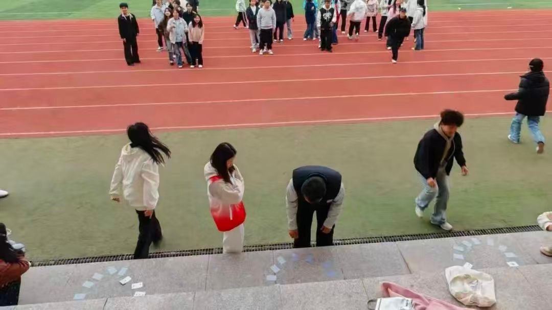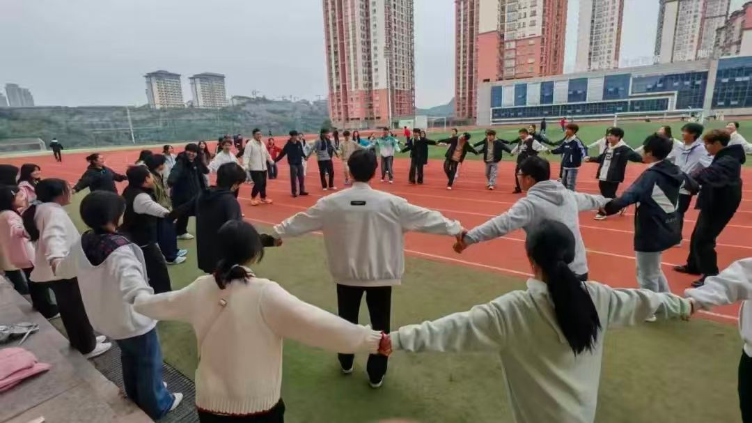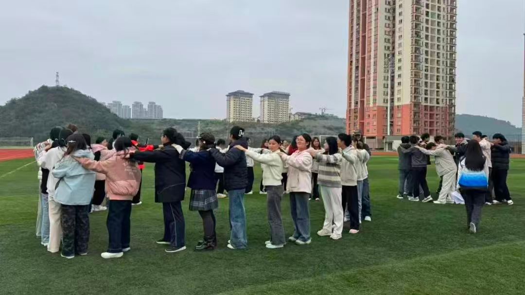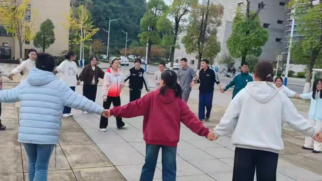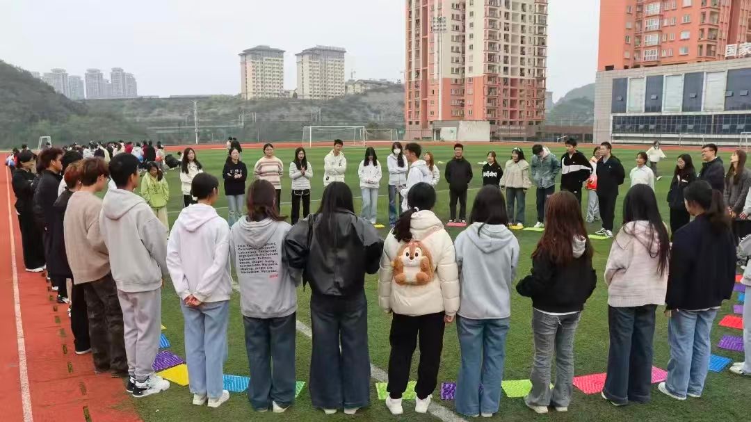 活动在学校的户外运动场正式开始。活动内容层层递进、妙趣横生,包括:“按摩操”“排兵布阵”“默契传声筒”等项目,让参与学子在动静之间收获成长。