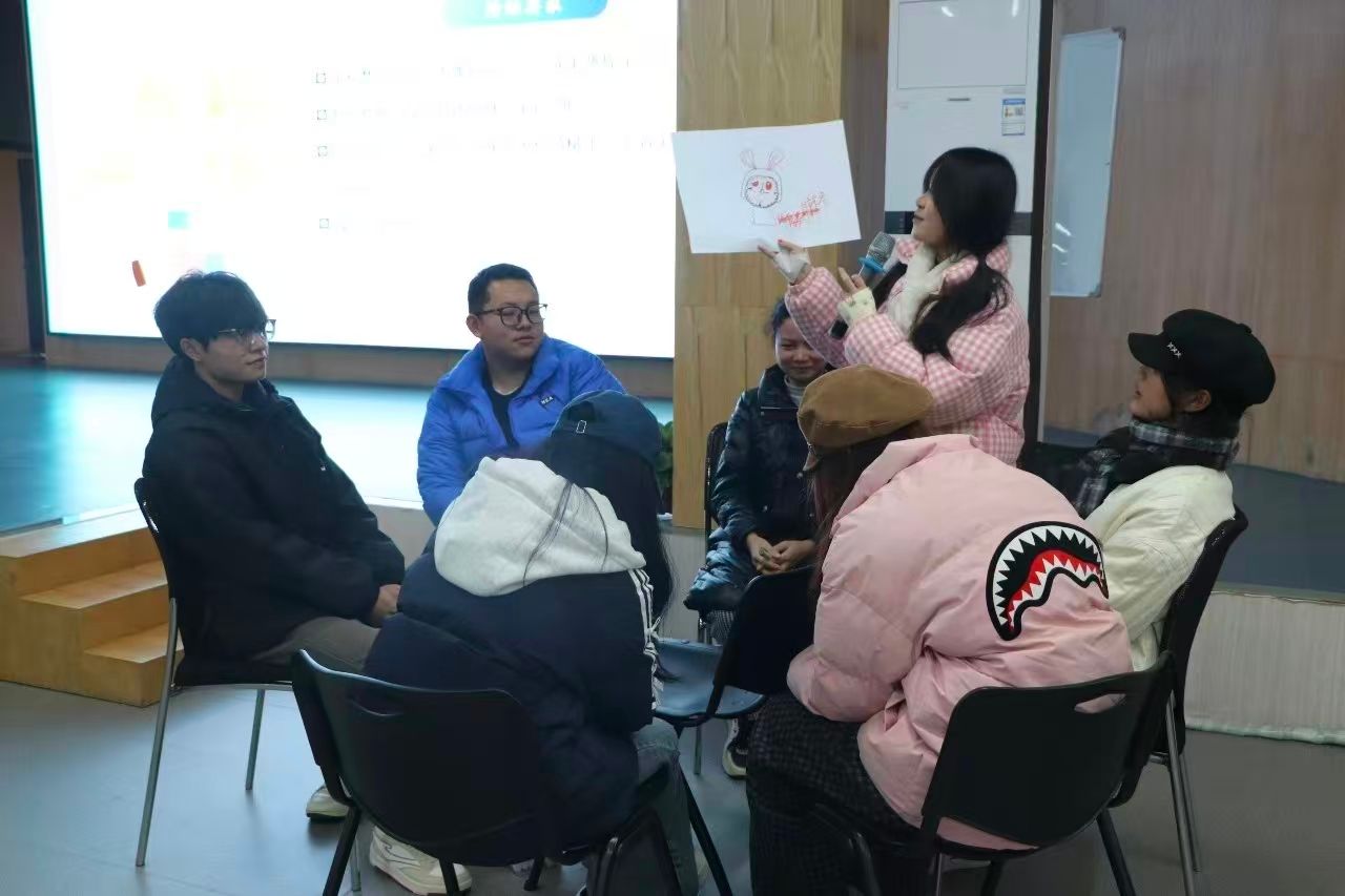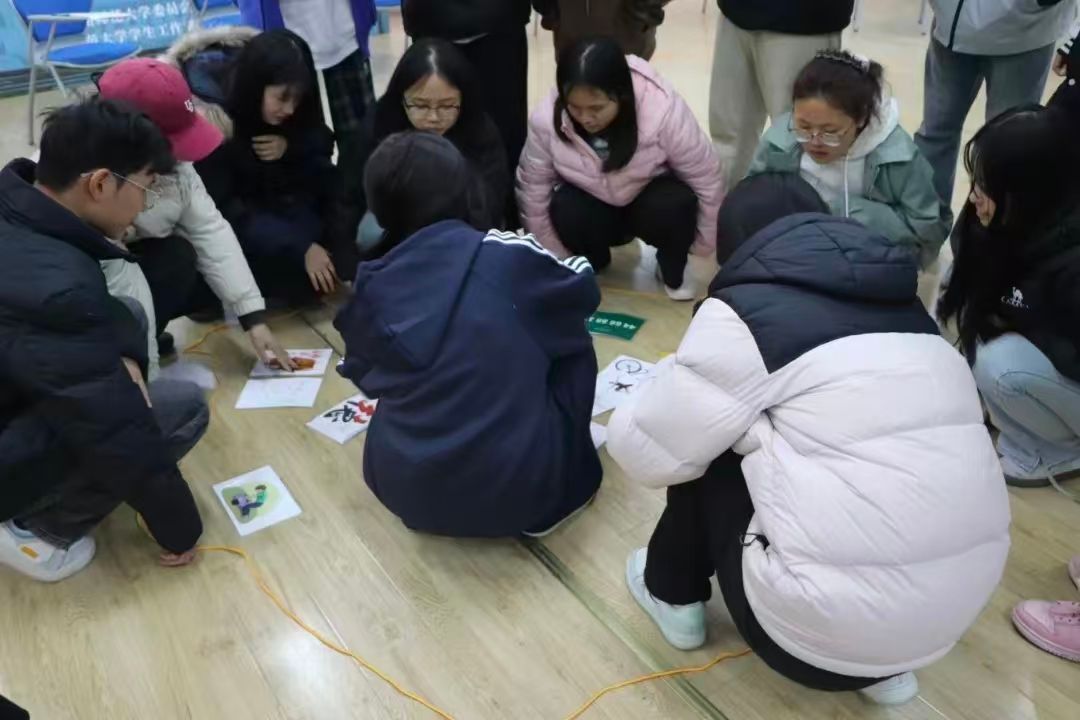 11月18日,由王芳老师担任团体带领者开展了“团队协作”主题团辅。王老师带领同学们先后参与了“桃花朵朵开"“滚雪球”等热身活动,大家依次介绍自己的名字与爱好,在欢声笑语中快速熟悉彼此;“共同画像”任务中,各小组通过分工协作完成一幅“心灵守护”主题画作,用色彩传递对心理健康工作的理解;“管理七巧板”挑战里,大家在有限时间内解锁拼图密码,沟通和协作对团队目标的重要性由此显现。