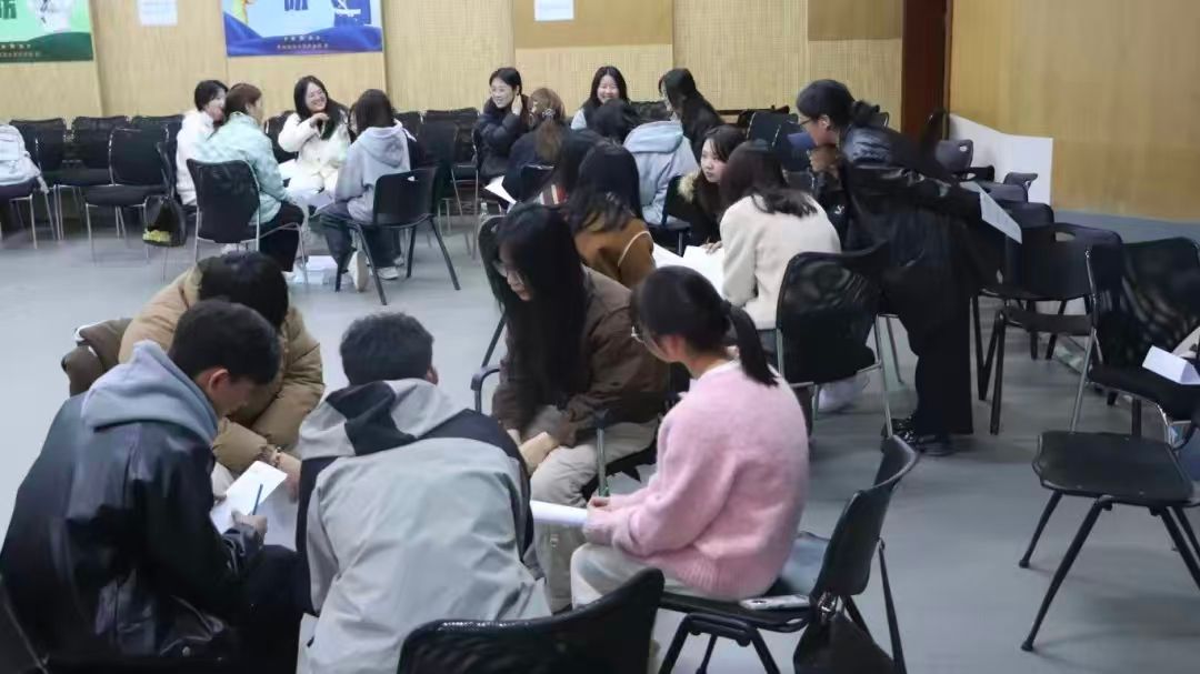 同日,曾珍老师担任团体带领者开展了“破冰之旅”主题团辅。在轻缓的音乐中,同学们逐一进行自我介绍,打破了陌生感。随后通过“松鼠抱大树”“趣味签名”“接龙按摩”等互动游戏拉近彼此距离,最后在“极速60秒”的紧张挑战中,大家为了共同目标默契配合,在倒计时的催促里完成了信息传递与任务攻坚,切实感受到团队合作的意义。